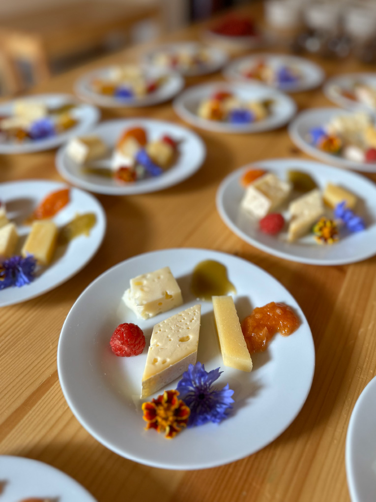 La confettura di more si abbina perfettamente al formaggio Fior di Malga. Stagionato tre mesi, dalla pasta morbida e vellutata ha un sapore dolce e ricco, con sfumature aromatiche che ricordano i pascoli di montagna. La confettura di more dona una nota fruttata e lievemente acidula.